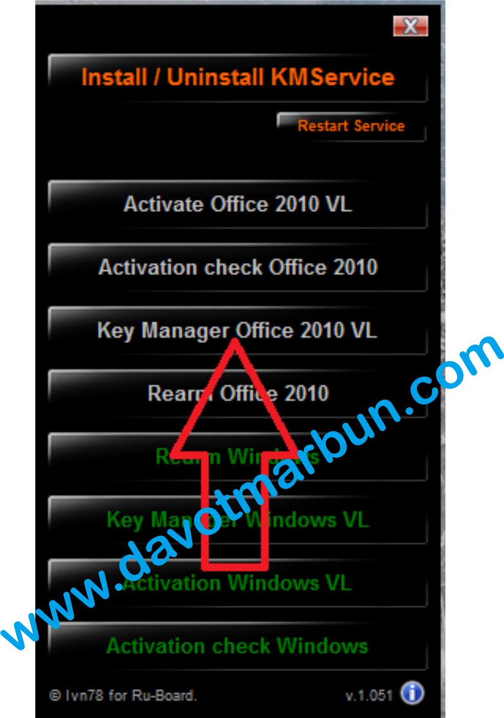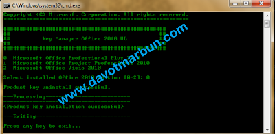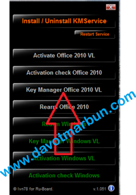 Tahap berikutnya akan muncul tampilan gambar seperti dibawah ini, klik tombol "Key Manager Office 2010 VL"