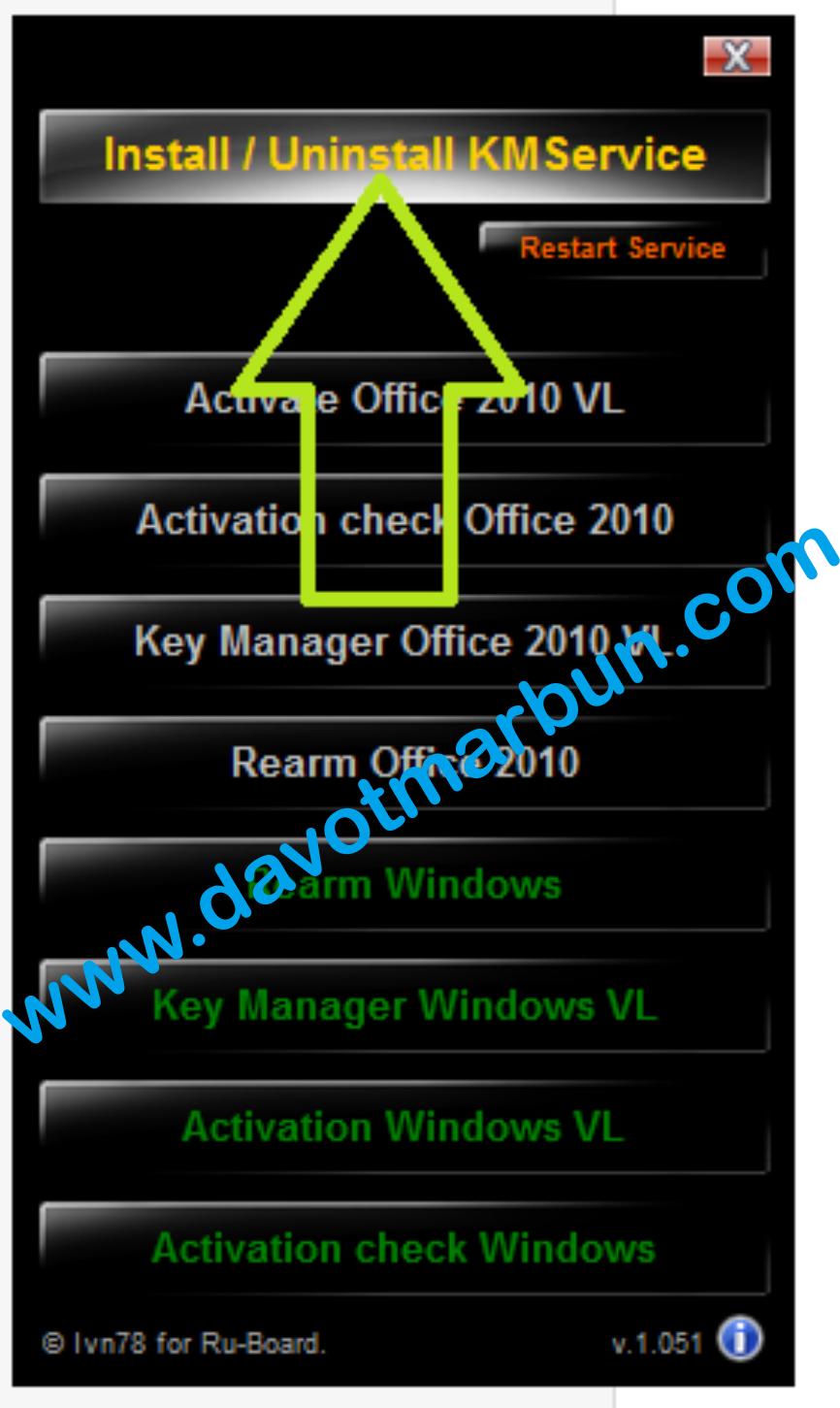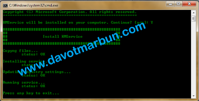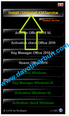 Lalu klik tombol "Instal/Uninstall KMService" lihat seperti tampilan gambar dibawah ini.